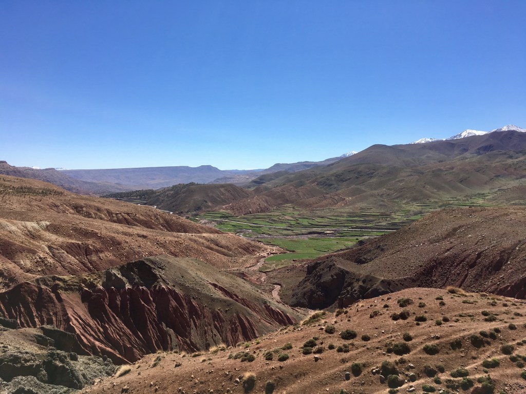 Driving to the city from Ouarzazate takes you on a scenic highway through the Atlas mountains. From the gate of the desert to the green and vital regions close to the bumblebee hive of Marrakech. The roads are curvy, but well maintained.